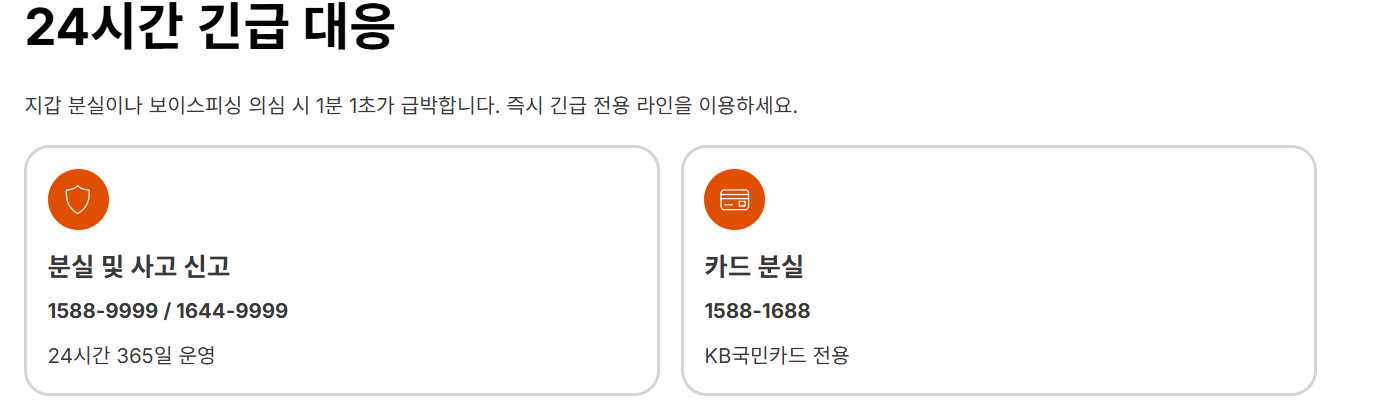 - 카드 분실: 1588-1688 (KB국민카드 전용)