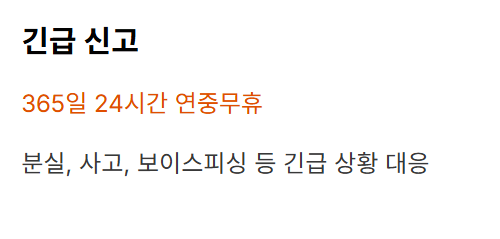 - 긴급 신고: 365일 24시간 연중무휴 (분실, 사고, 보이스피싱 등)
