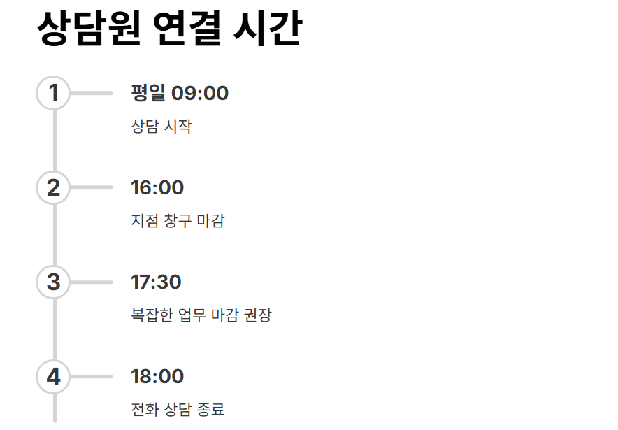 2. 상담원 연결 시간 및 영업시간