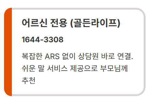 - 어르신 전용 (골든라이프): 1644-3308